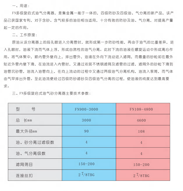 FN多級旋啟式油、氣、砂分離器
